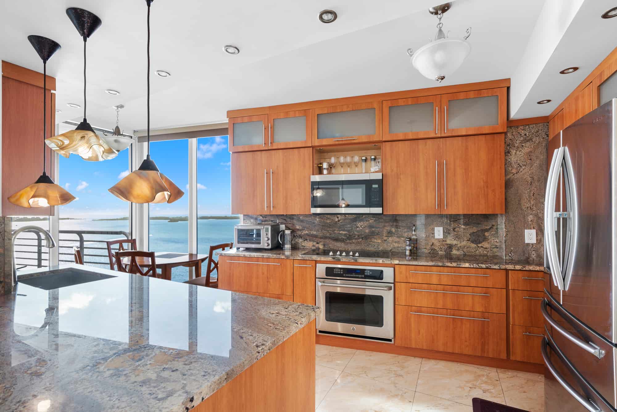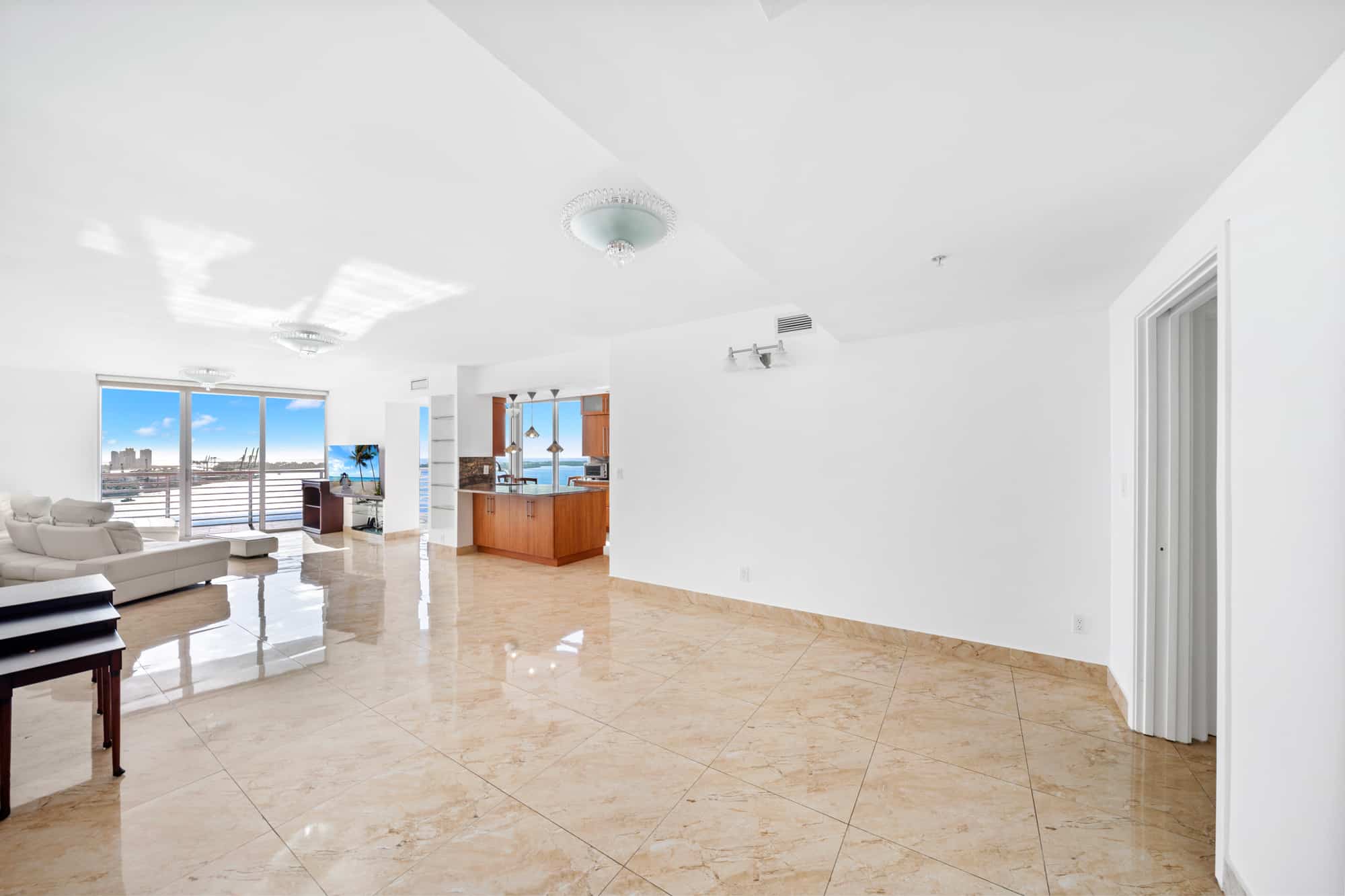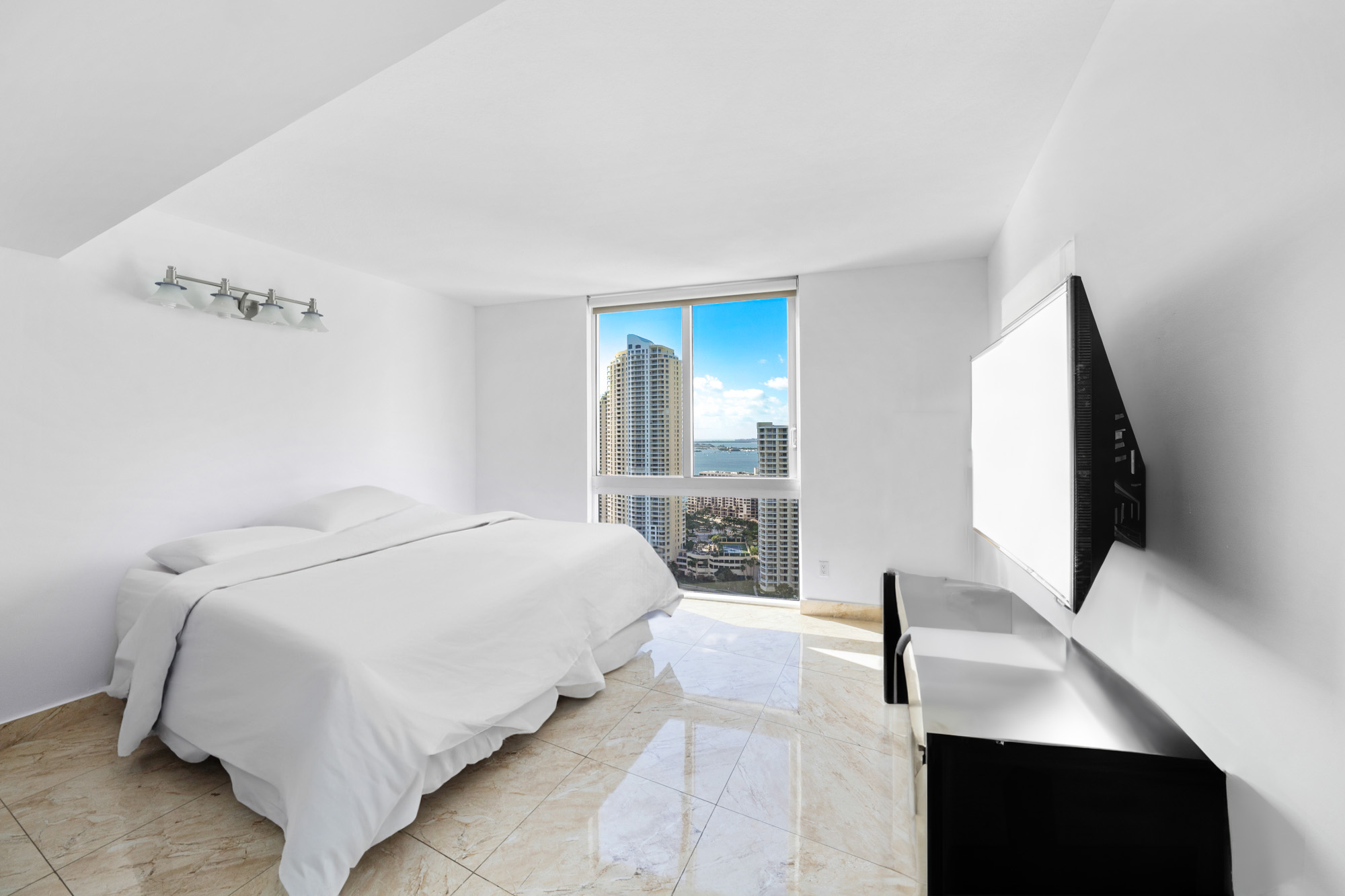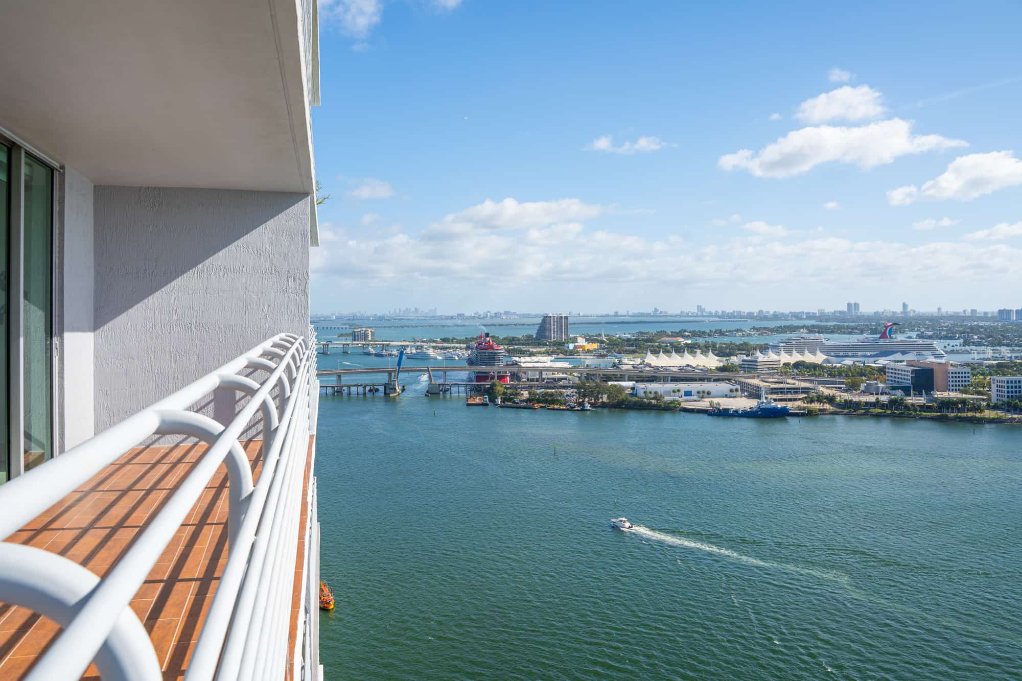 - Residences, party, and amenity decks offer spectacular and dramatic views of Biscayne Bay, Port of Miami, Brickell Avenue, Downtown Miami, South Beach, and Key Biscayne